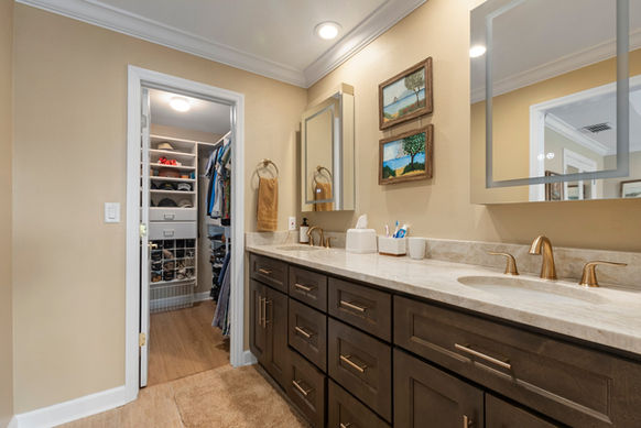 The project was extensive, involving the renovation of bedrooms, refreshing the fireplace, the creation of a new laundry room, updating all bathrooms, and installing new flooring throughout the home. One of the unique challenges we faced was raising the floor in the primary bedroom due to the home’s age and some tricky structural elements.